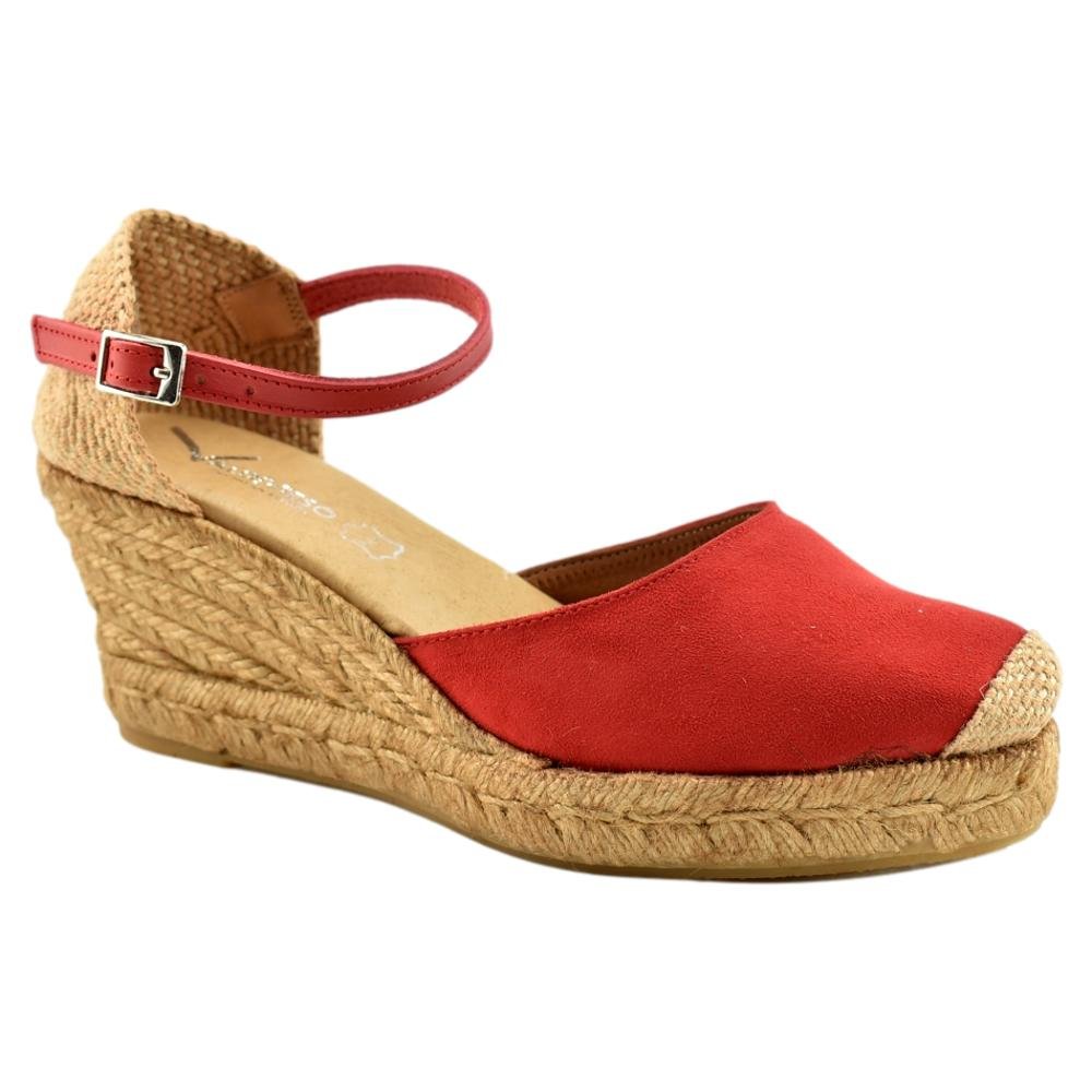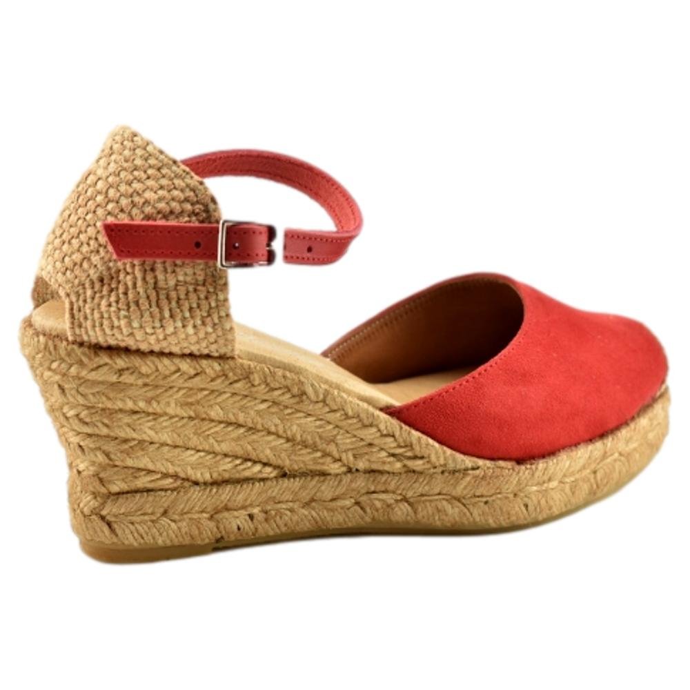 FABRICADO EN ESPAÑA. Zapatillas de esparto con altura de 5 cuerdas más plataforma. Planta de gel muy cómoda. El tejido empleado es serratex con la puntera bordada. Talonera cerrada con pulsera al tono y cierre de hebilla.