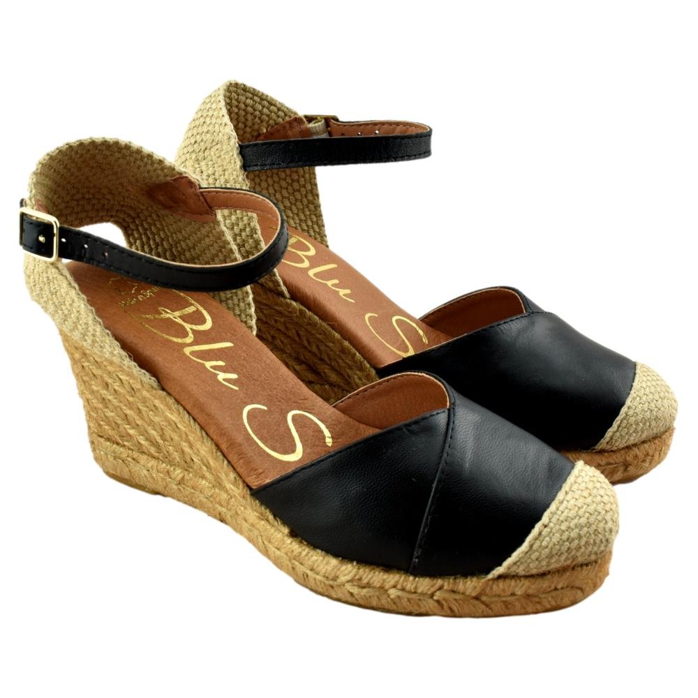 Alpargatas de cuña de esparto de piel con planta de gel 113572