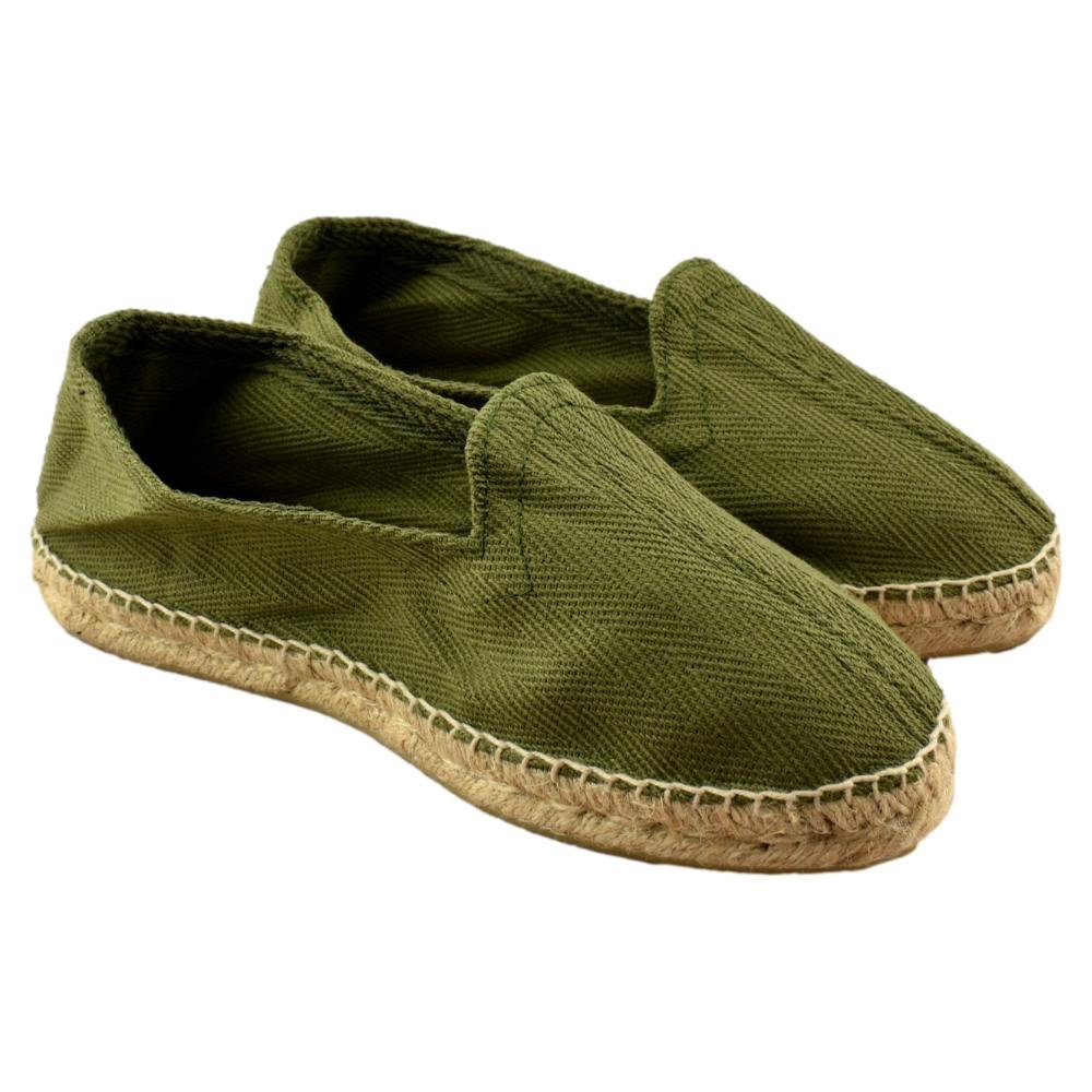 FABRICADO EN ESPAÑA. Zapatillas de esparto cosidas a mano. Lona de espiga. Patín de goma en toda la suela.