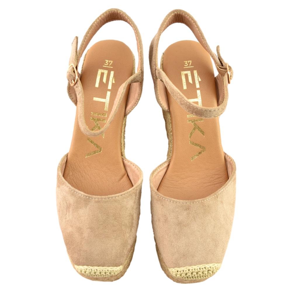 Si quieres destacar tu personalidad de manera diferente, comienza con darle una toque a tus looks este verano con estas cuñas en color taupe. ¡No pasaréis desapercibidas ni aunque quisieras! Altura cuña 10cm más plataforma 3cm.