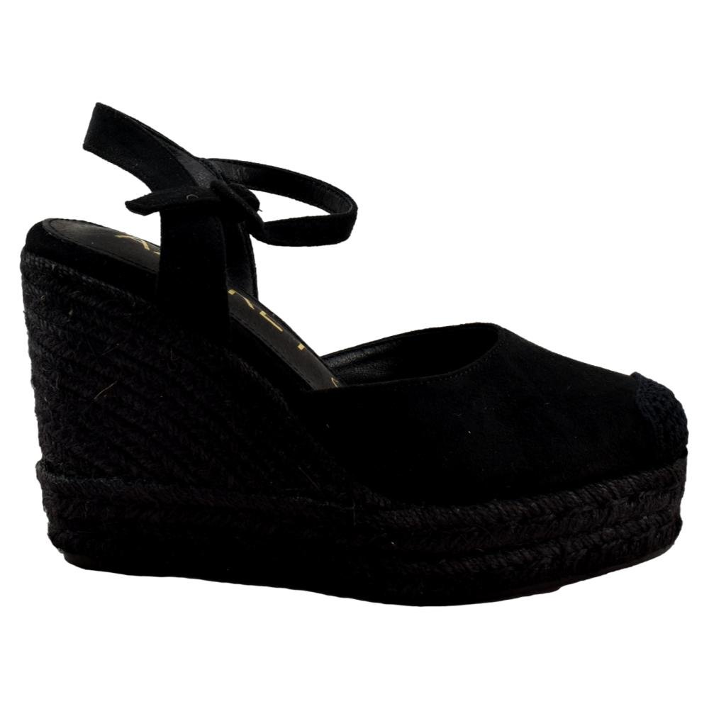 Si quieres destacar tu personalidad de manera diferente, comienza con darle una toque a tus looks este verano con estas cuñas en color negro. ¡No pasaréis desapercibidas ni aunque quisieras! Altura cuña 8cm más plataforma 3cm.