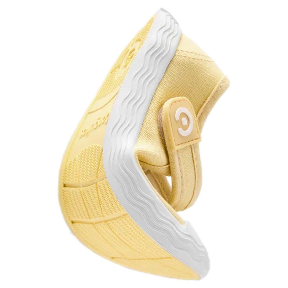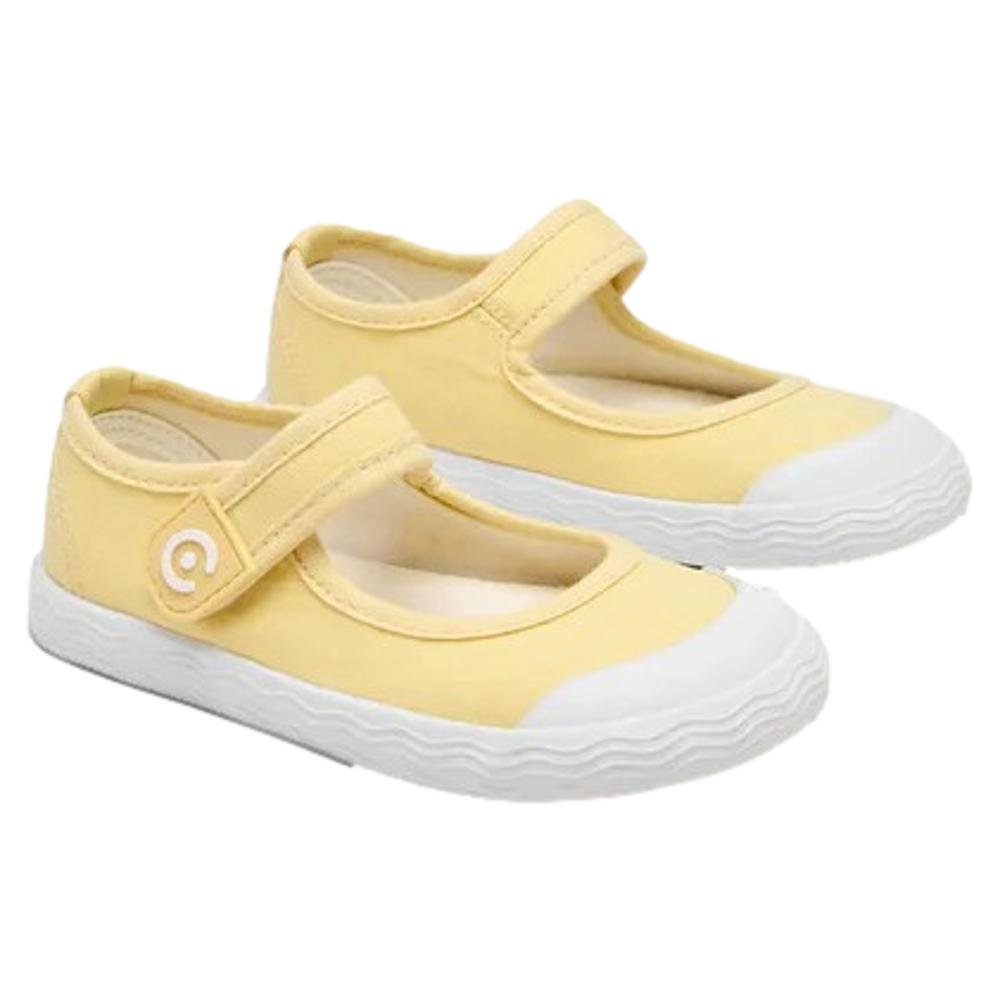 Merceditas Barefoot Goflex de lona en tono amarillo mantequilla, el color tendencia de esta primavera/verano y fácil de combinar. Con estilo deportivo y cierre de tira adherente para poner y quitar en segundos. Su diseño sencillo, con una original suela con detalle de ondas, las convierte en una opción cómoda y práctica para el cole y los fines de semana