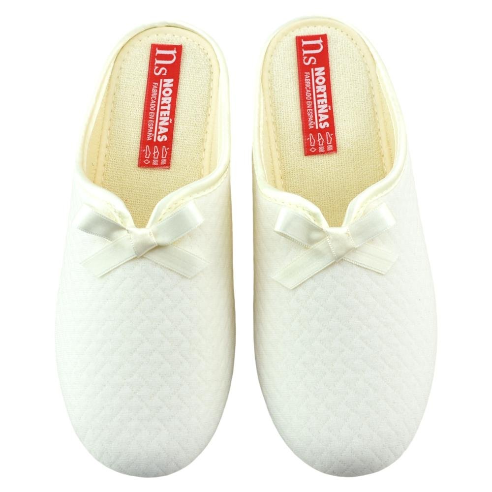 FABRICADA EN ESPAÑA. Zapatillas de casa compuestas por un tejido muy agradable y suave. Cuña incorporada de 2,5cm. piso de goma flexible. Lazo delantero de raso.