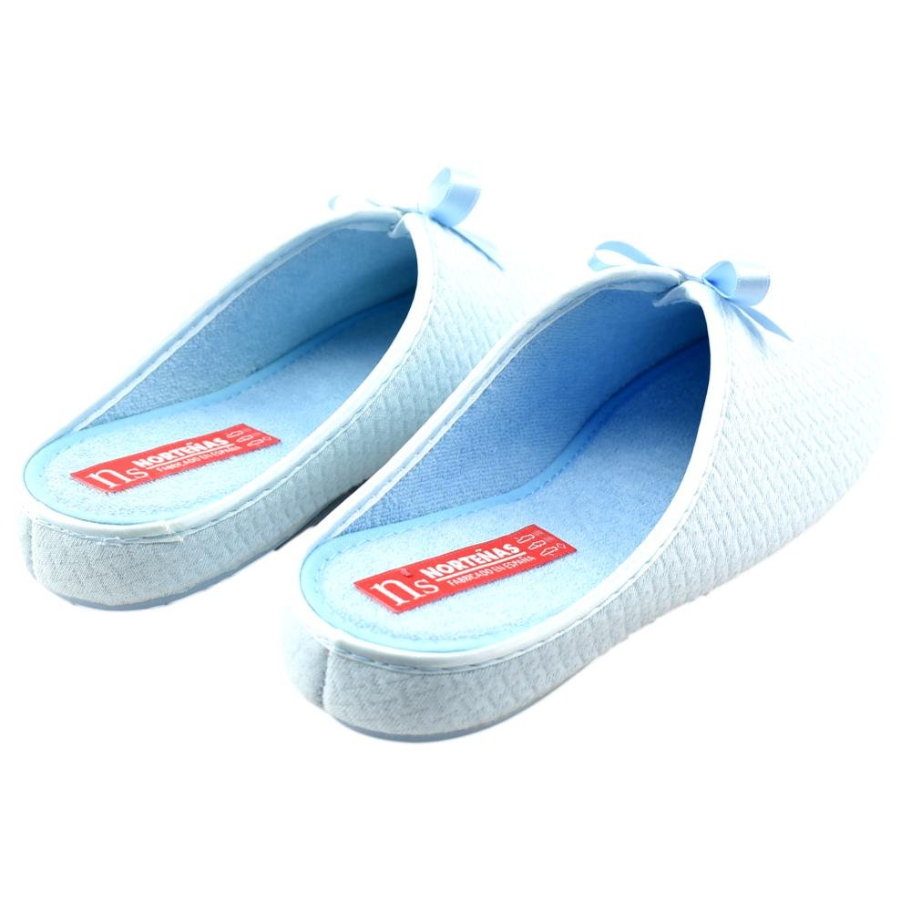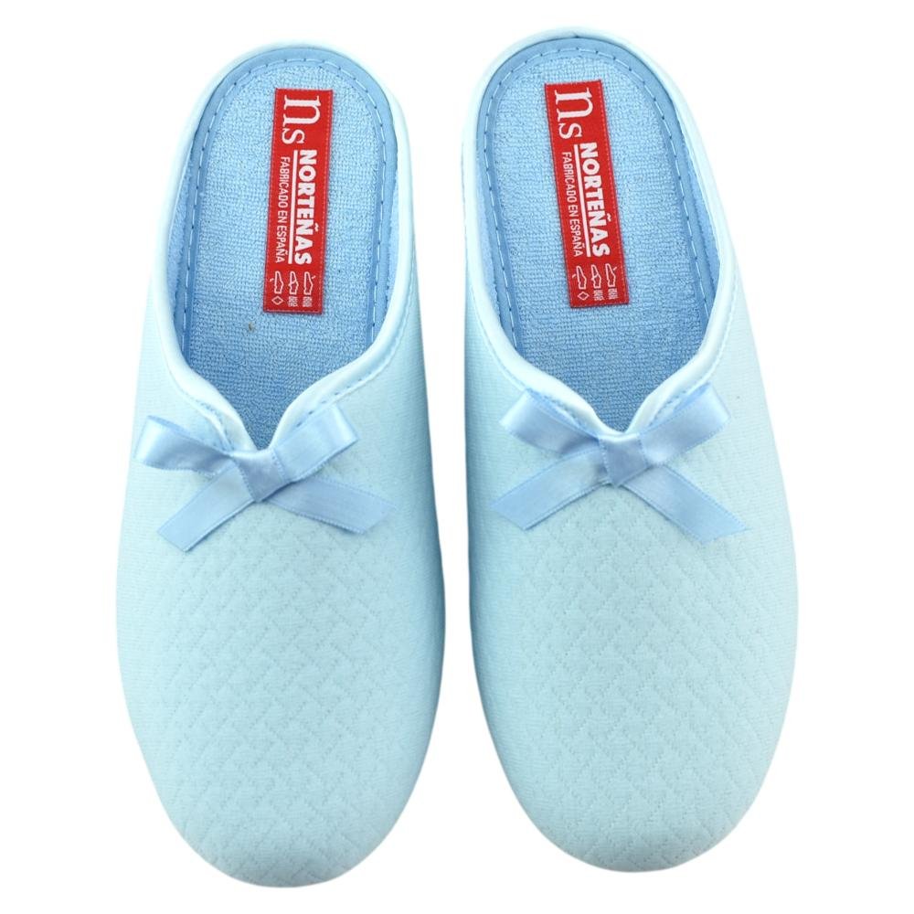 FABRICADA EN ESPAÑA. Zapatillas de casa compuestas por un tejido muy agradable y suave. Cuña incorporada de 2,5cm. piso de goma flexible. Lazo delantero de raso.