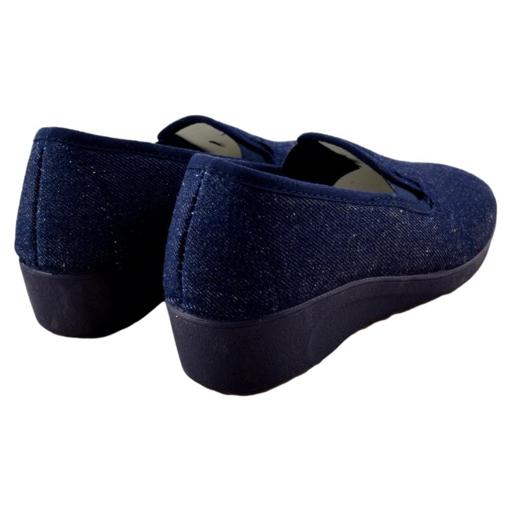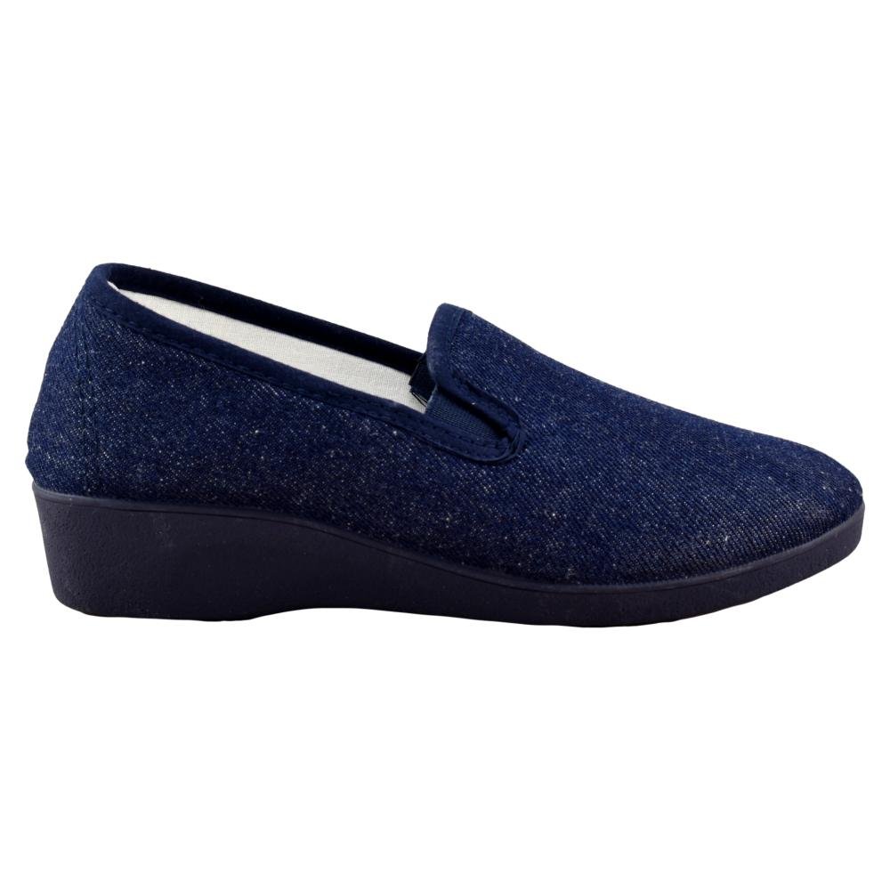 FABRICADO EN ESPAÑA. Zapatillas de lona vaquera con elásticos laterales y cuña de goma de 3 5 cm.