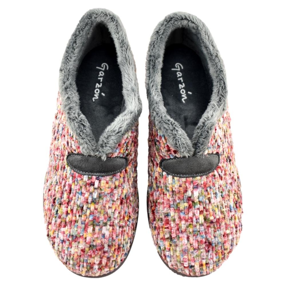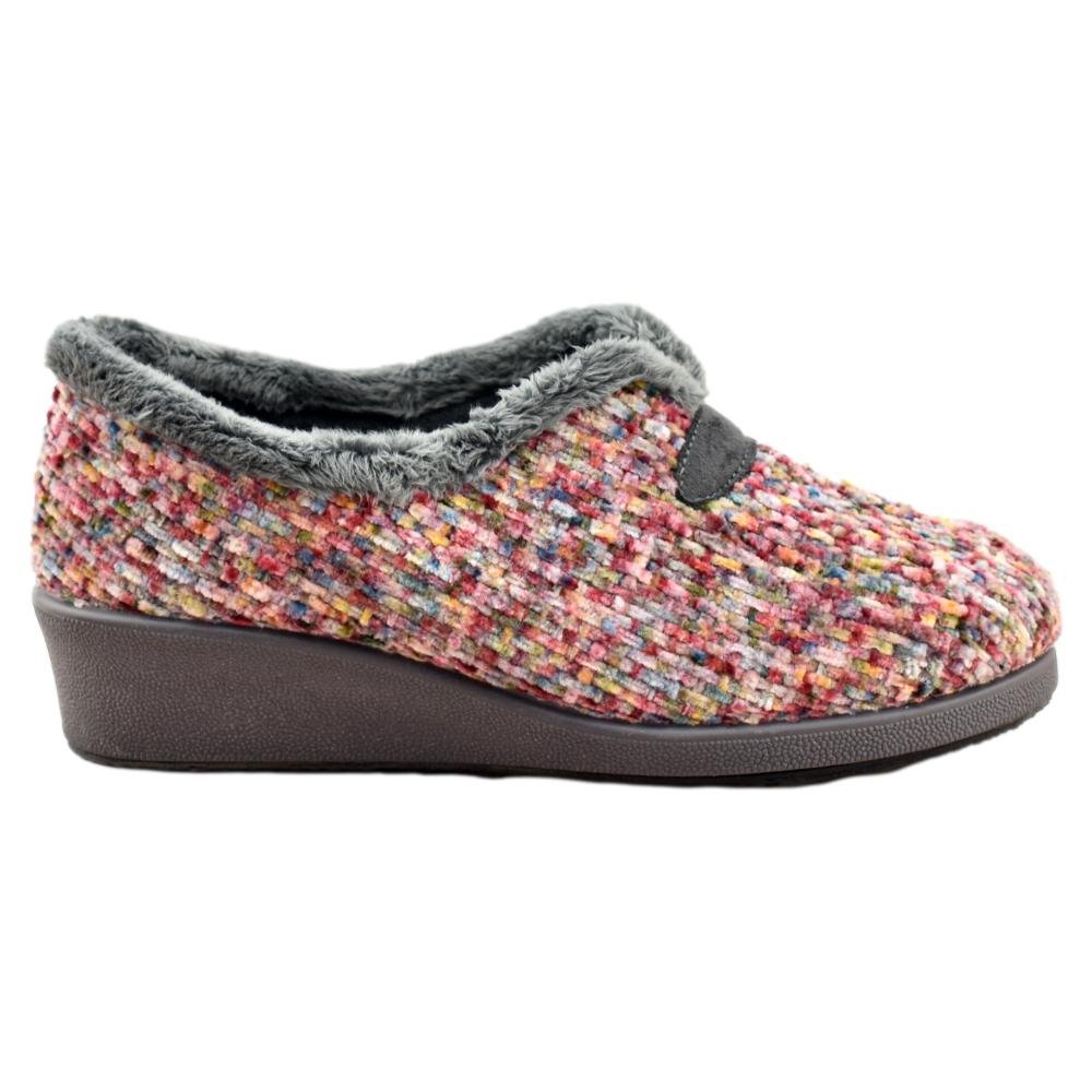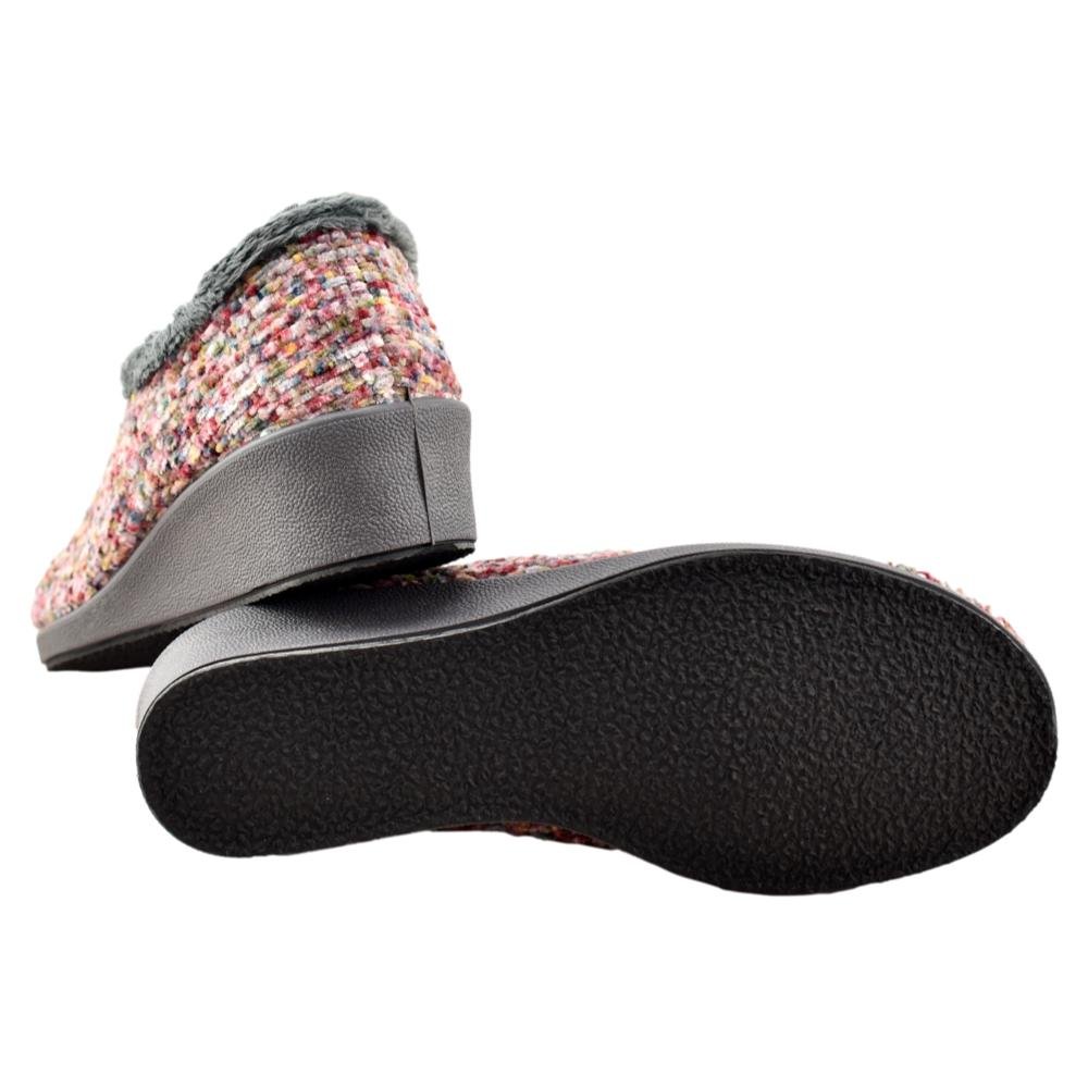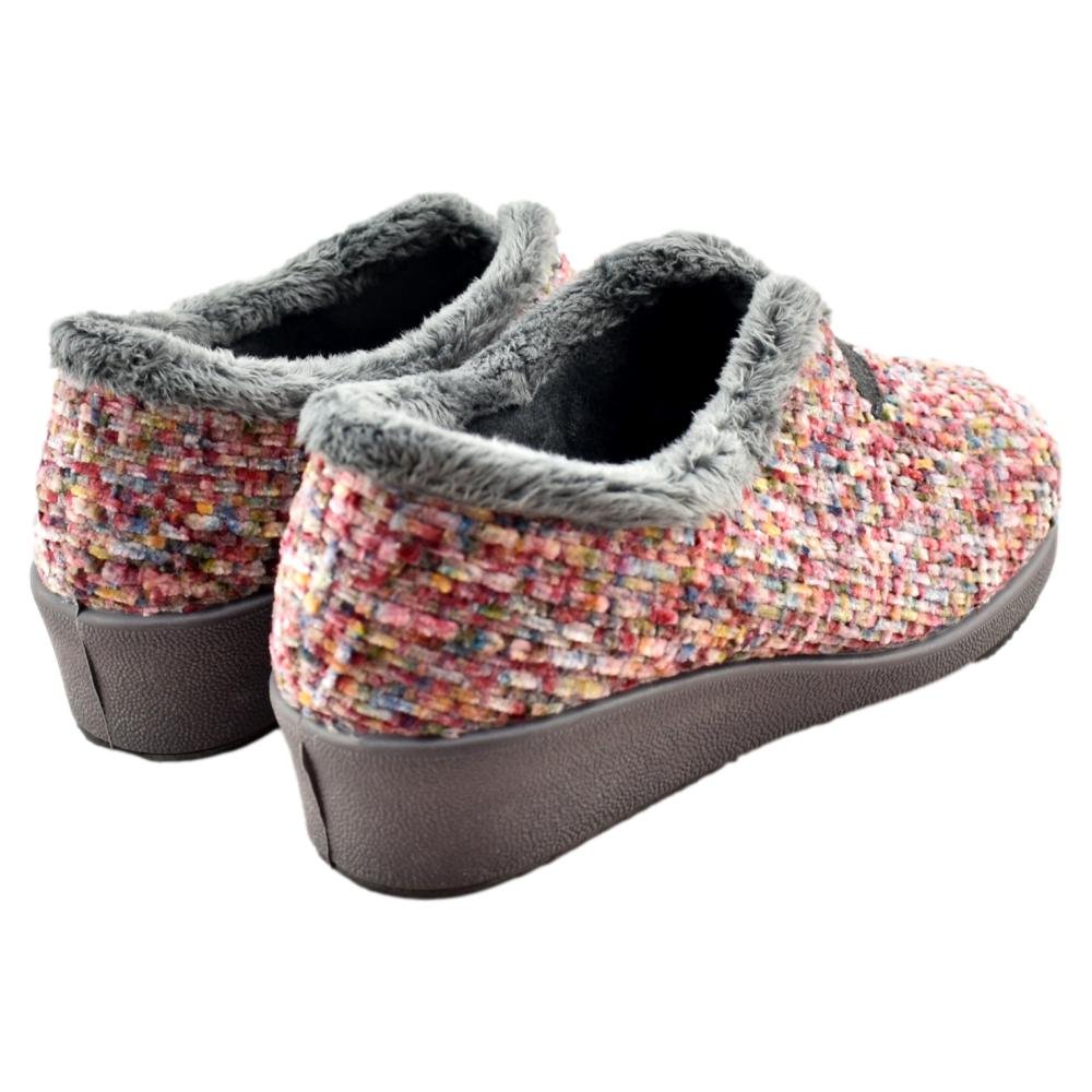FABRICADO EN ESPAÑA. Zapatillas de casa cerradas con cuña de goma de 4cm. Fabricado en tejidos de 1ª calidad, destacando su suavidad y calidez.