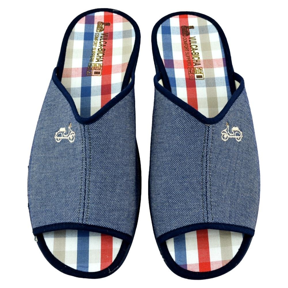 FABRICADO EN ESPAÑA. Zapatillas de casa de hombre muy frescas y cómodas. Fabricadas en lona suave y transpirable con piso de goma flexible, la convierten en un modelo muy confortable.
