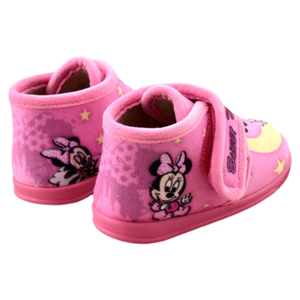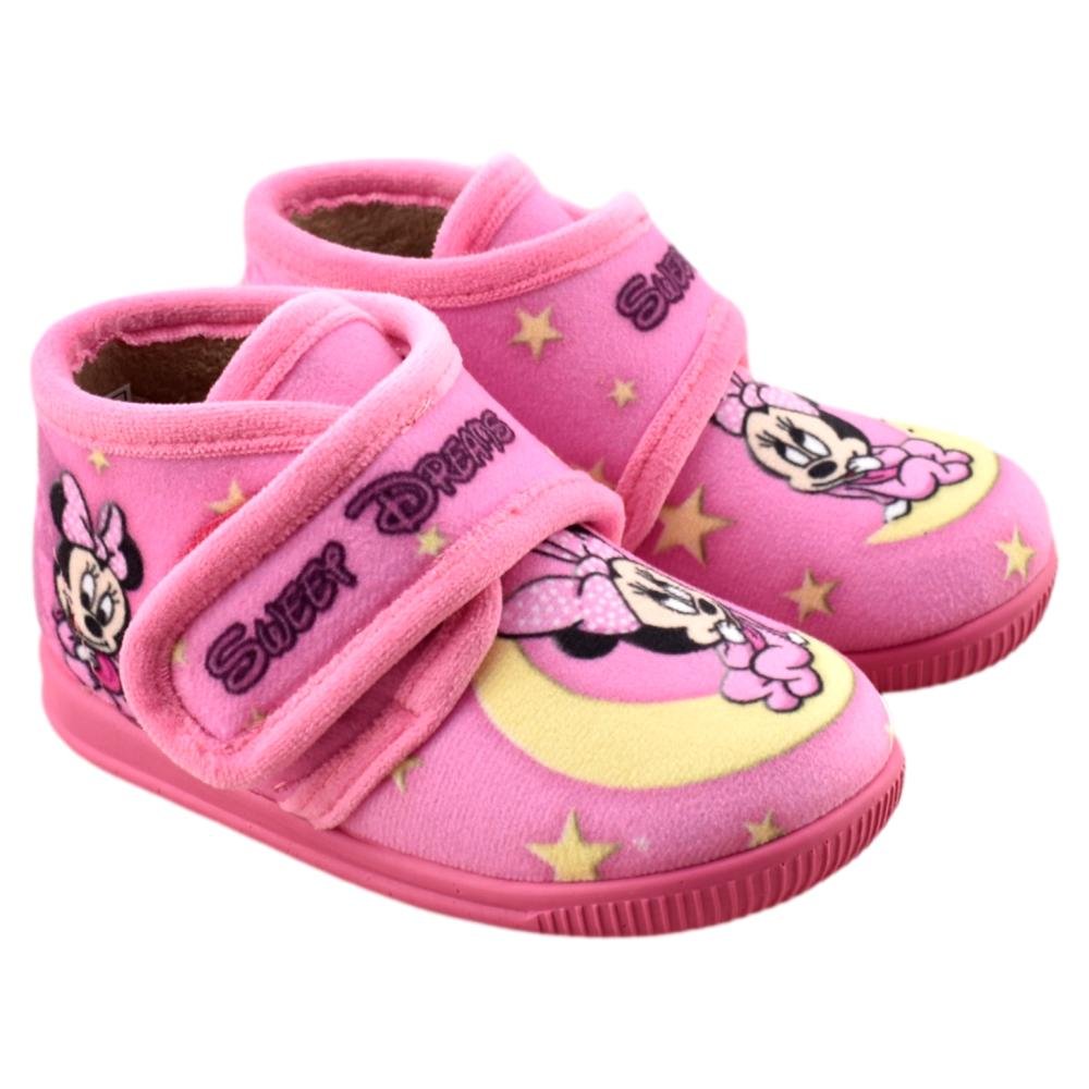 FABRICADO EN ESPAÑA. Botas de paño con forro muy suave y cálido. Divertido diseño de famosa ratoncita. Cierre ajustable de tira autoadhesiva. Piso de goma antideslizante y flexible.