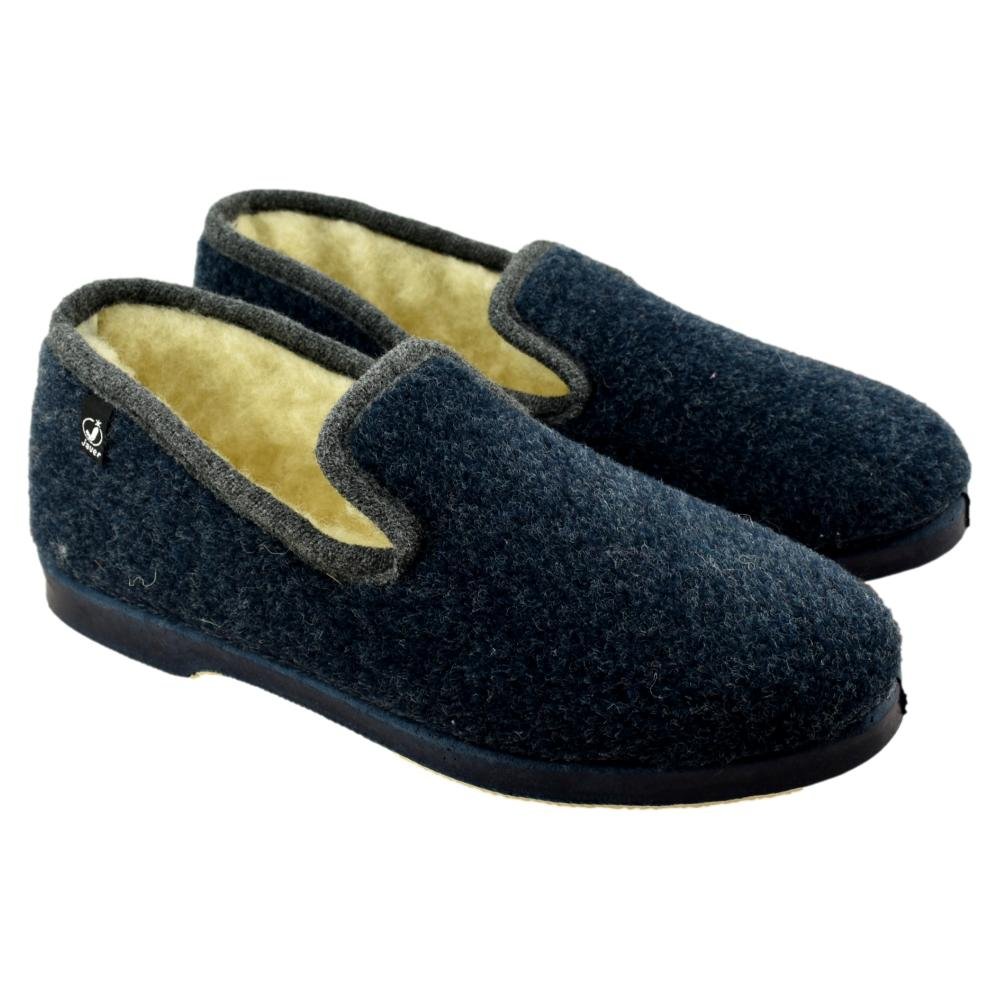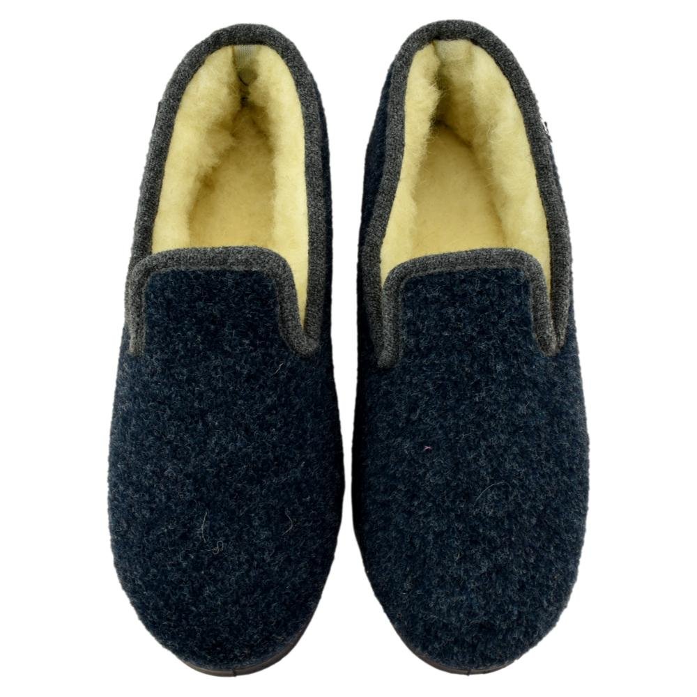 FABRICADO EN ESPAÑA. Zapatillas de casa cerradas con forro de borreguillo. Piso de caucho flexible y antideslizante.