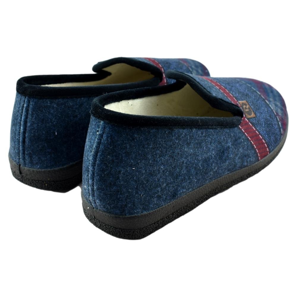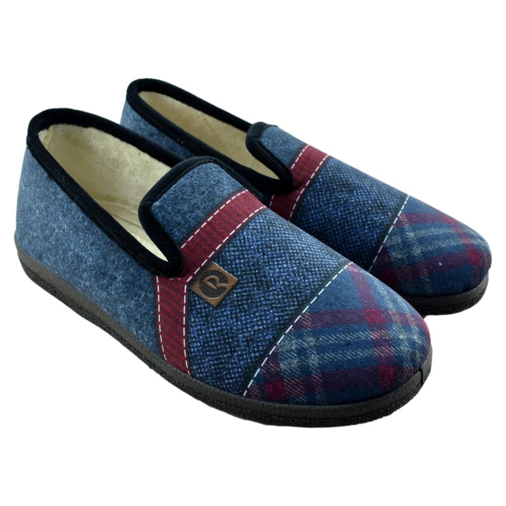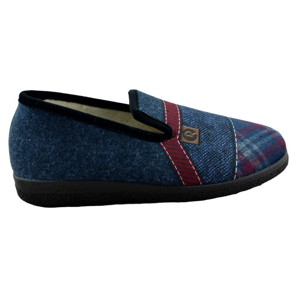 FABRICADO EN ESPAÑA. Zapatilla de hombre serigrafiada con imitación de diferentes tejidos. Paño muy suave y cálido. Piso ANTIDESLIZANTE.