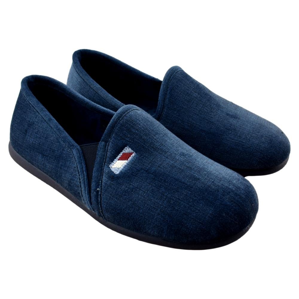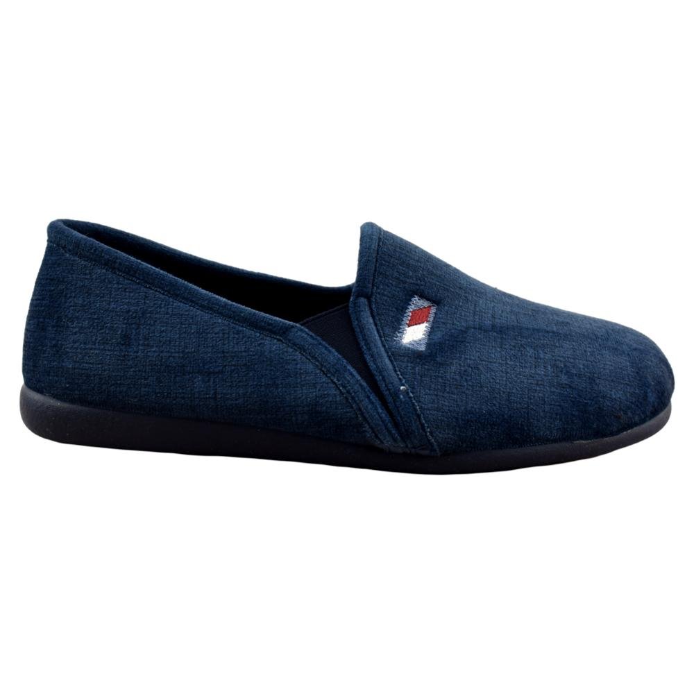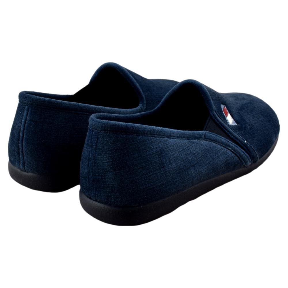 FABRICADO EN ESPAÑA. Zapatillas de casa de hombre fabricadas en paño suave y cálido. Piso de goma flexible y antideslizante. Elástico lateral que facilita el calce y aseguran una sujeción perfecta.