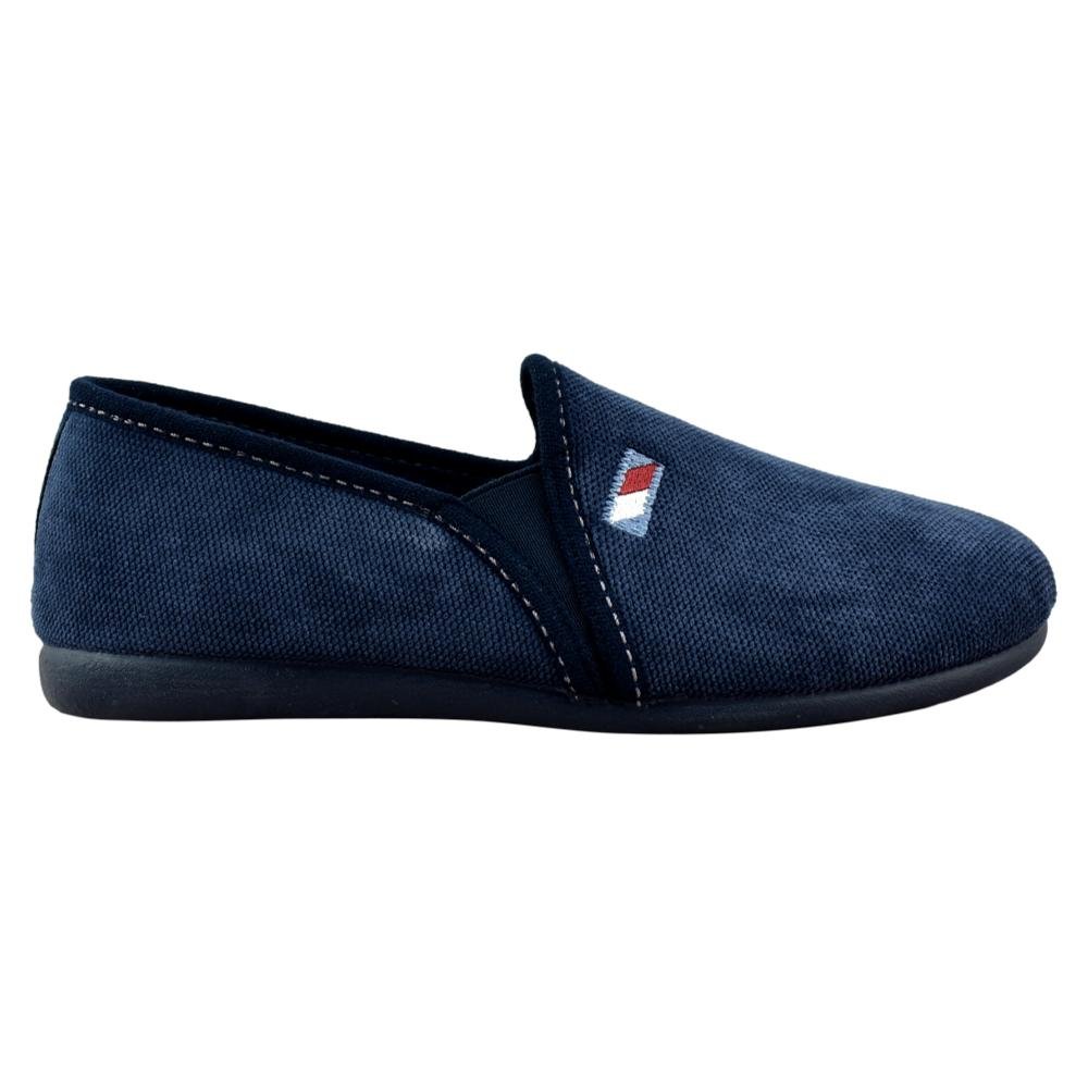 FABRICADO EN ESPAÑA. Zapatillas de casa de hombre fabricadas en paño suave y cálido. Piso de goma flexible. Elásticos laterales que facilitan el calce y aseguran una sujeción perfecta.