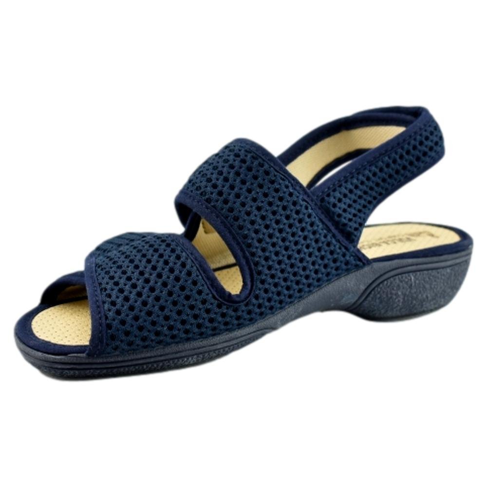 FABRICADO EN ESPAÑA. Zapatilla en tejido de rejilla muy suave, con 3 tiras adhesivas que se adaptan perfectamente a cualquier pie. Ideal para pies anchos y delicados. Piso de goma flexible y antideslizante.