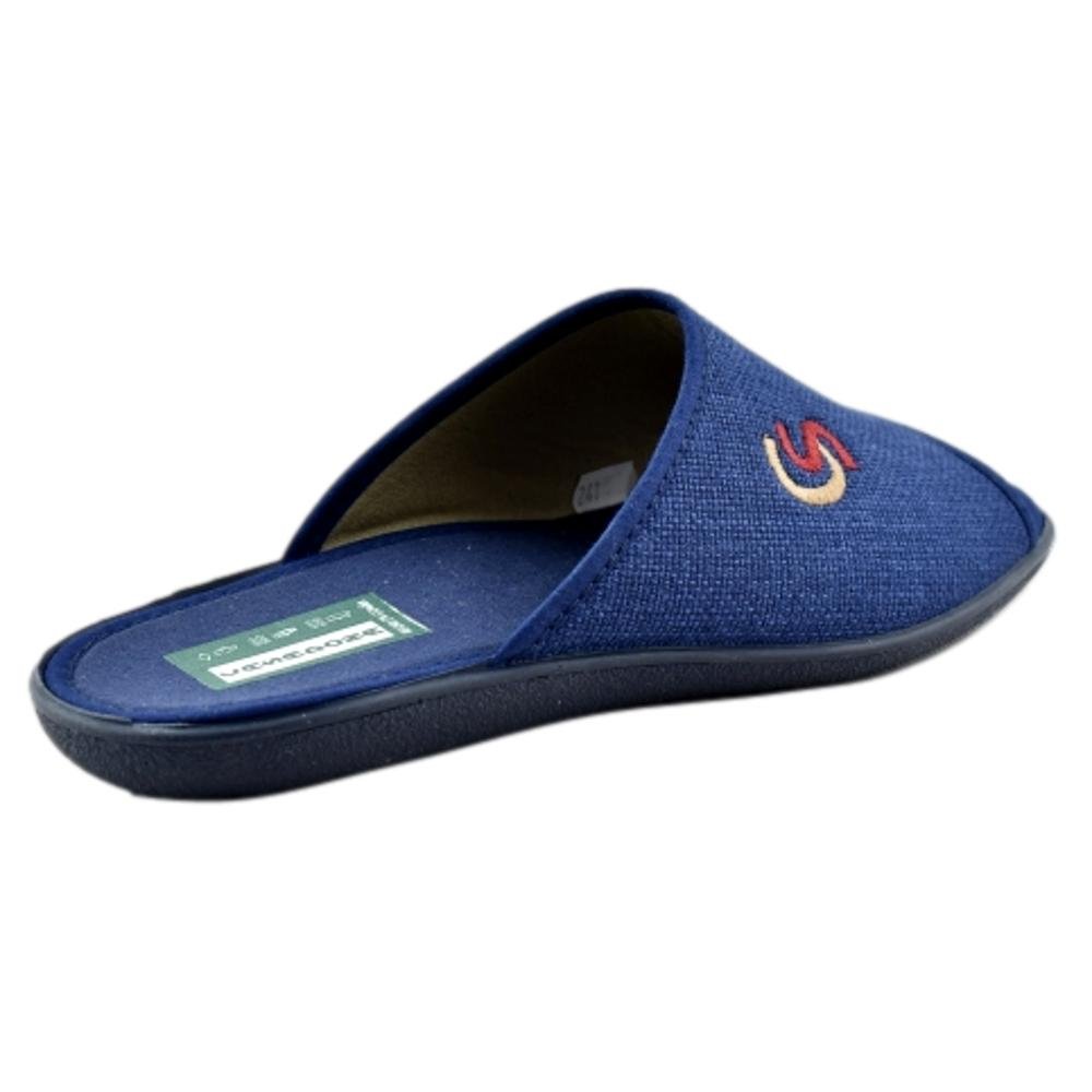 FABRICADO EN ESPAÑA. Zapatilla de casa fabricada en lona con bordado lateral. Piso de goma cómodo y flexible.