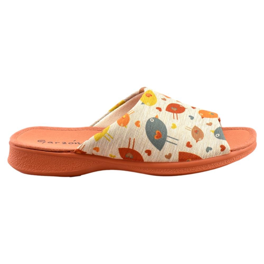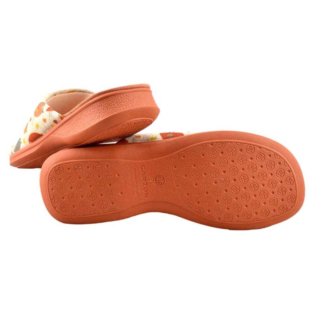FABRICADO EN ESPAÑA. Zapatillas fabricadas con materiales de 1ª calidad. Tejido muy fresco y suave al tacto con alegre estampado en tonos teja. Piso de goma flexible.