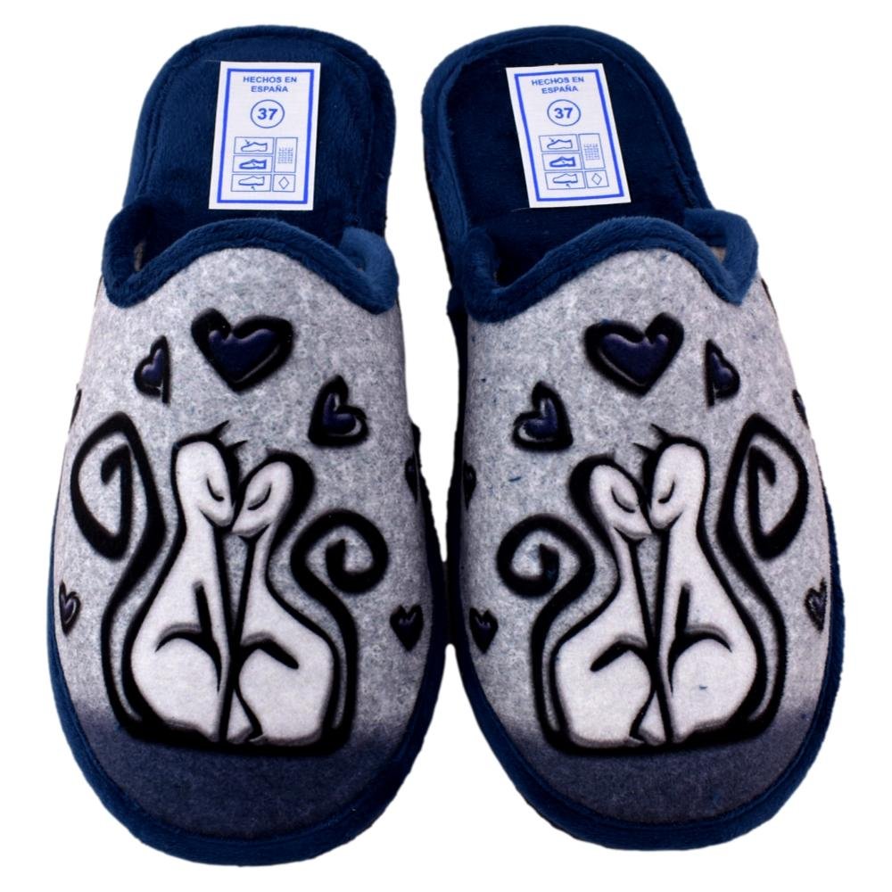 FABRICADO EN ESPAÑA. Zapatillas de casa muy ligeras con piso eva. Tejido muy suave y cálido con divertido diseño de gatos.