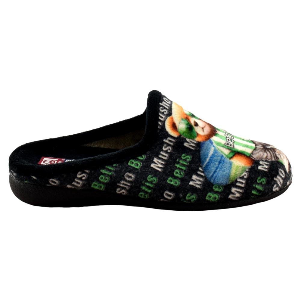 FABRICADO EN ESPAÑA. Simpáticas zapatillas de casa con plantilla acolchada extraíble y tejido muy suave y cálido. Piso de goma flexible y antideslizante. Diseño de un Oso con la camiseta del Betis.
