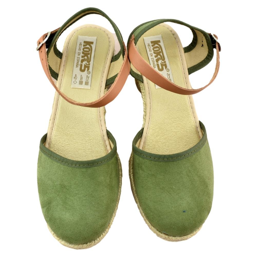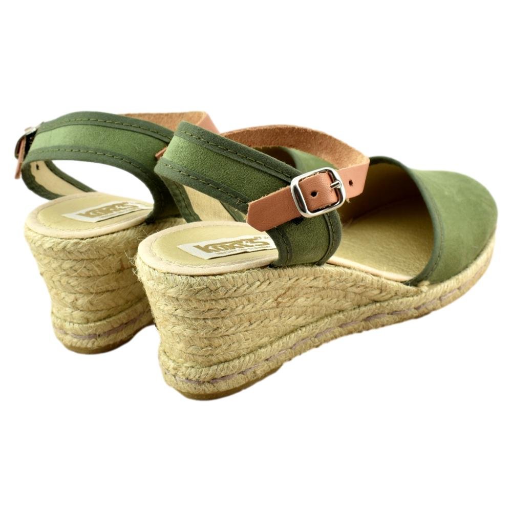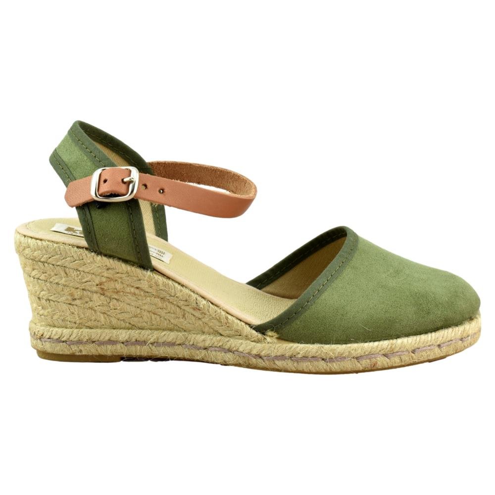Zapatillas de esparto de 5 cuerdas y 7cm de altura. Pala textil de antelina y correa cuero al tobillo con cierre de hebilla. Piso flexible y plantilla acolchada.