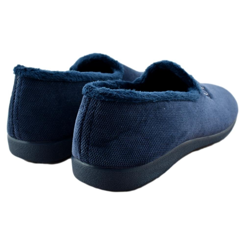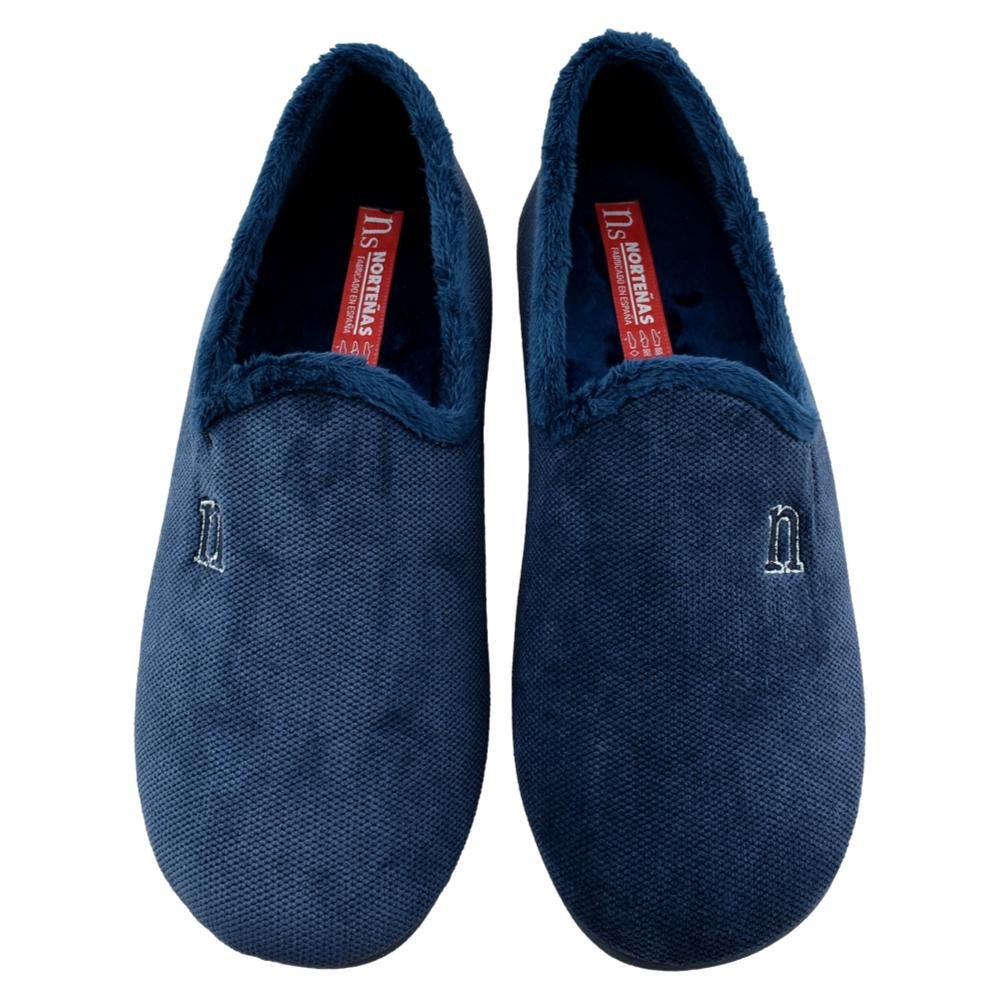 FABRICADO EN ESPAÑA. Zapatillas de casa fabricada en materiales de 1ª calidad. Paño muy suave y cálido en azul marino. Piso de goma antideslizante y flexible. Modelo cómodo que le aportará confort y bienestar.