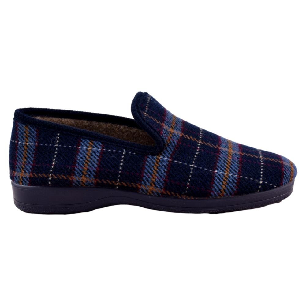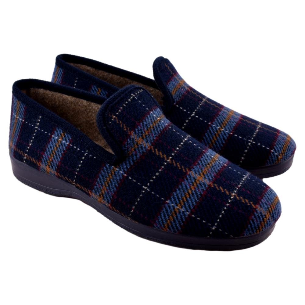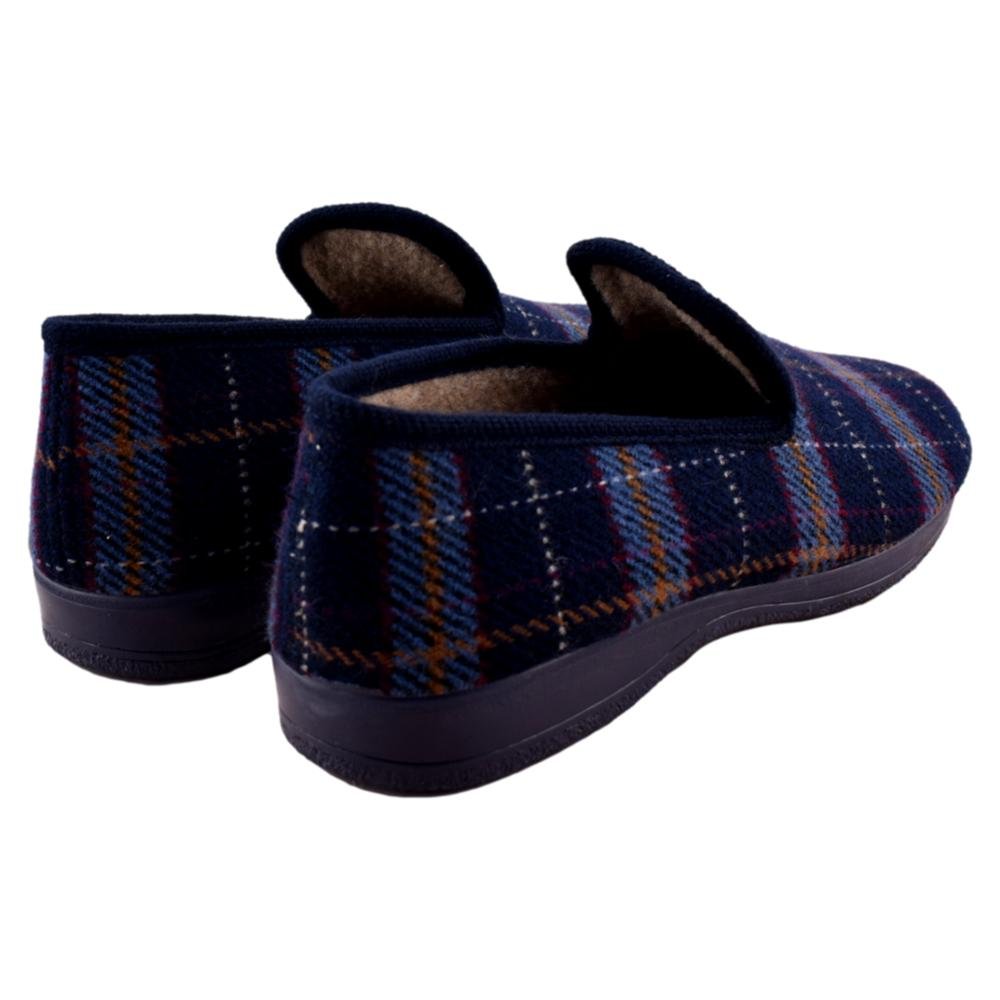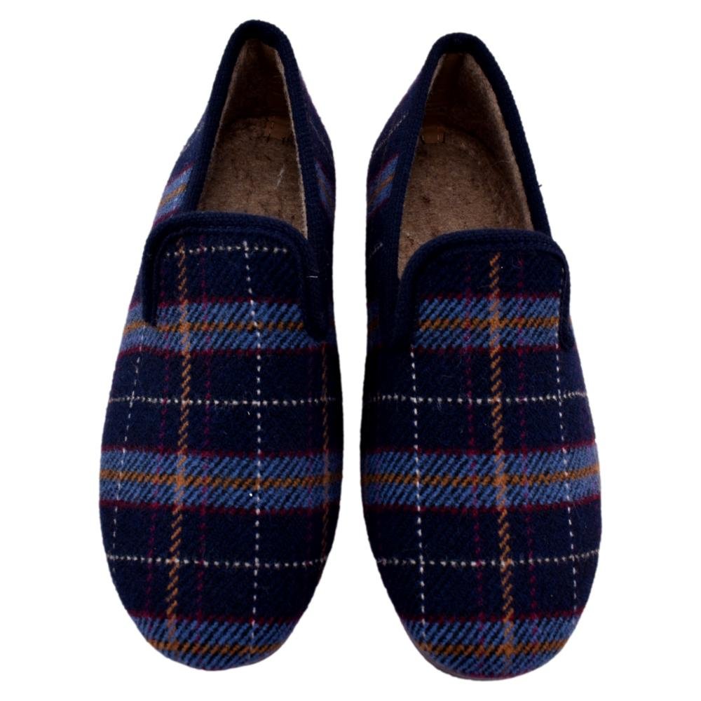 FABRICADO EN ESPAÑA. Zapatilla de paño de cuadros. Muy cómoda y calentita, con tejido suave y piso de goma.