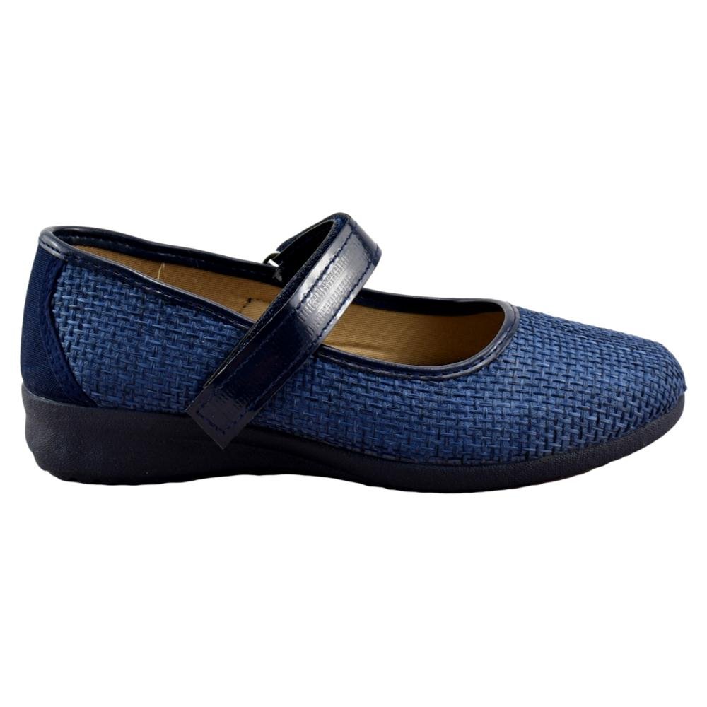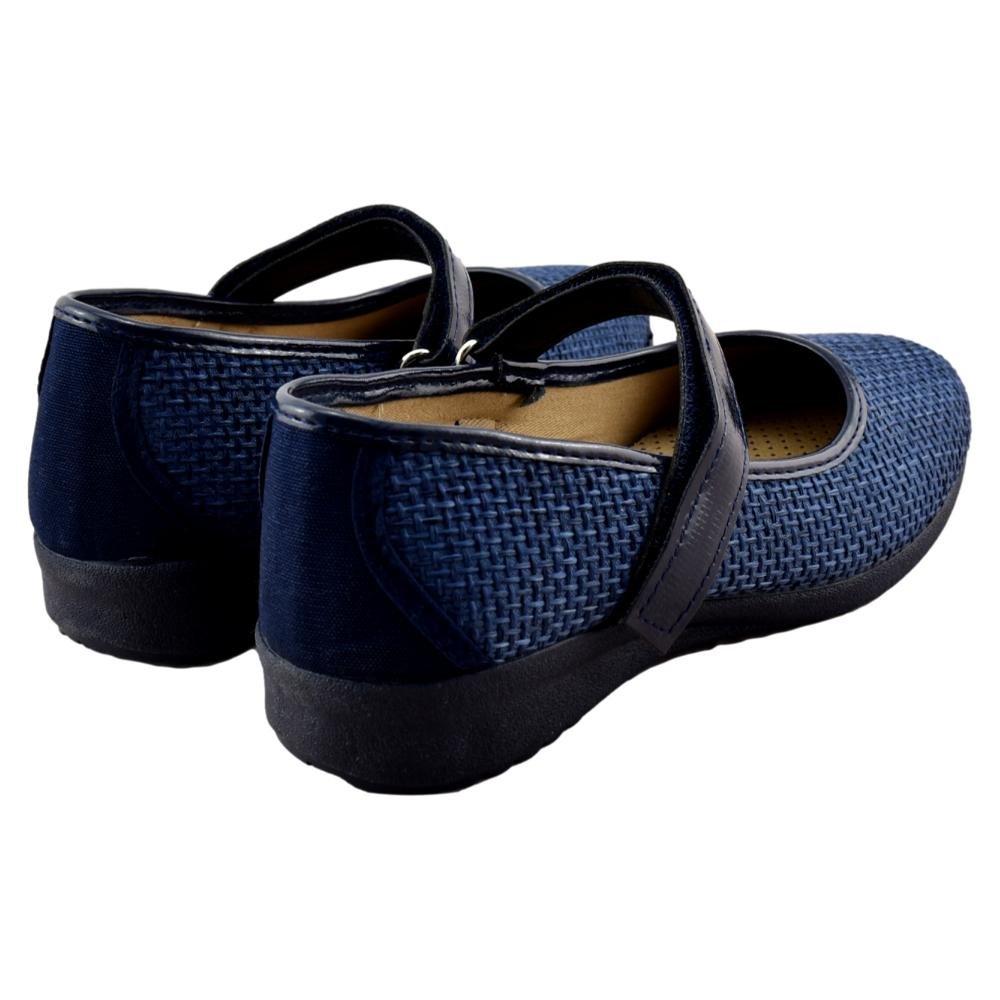 FABRICADO EN ESPAÑA. Zapatillas de lona tipo mercedes con tita ajustable adhesiva. Piso de goma antideslizante con cuña de 3cm. Incorpora plantilla acolchada extraíble.