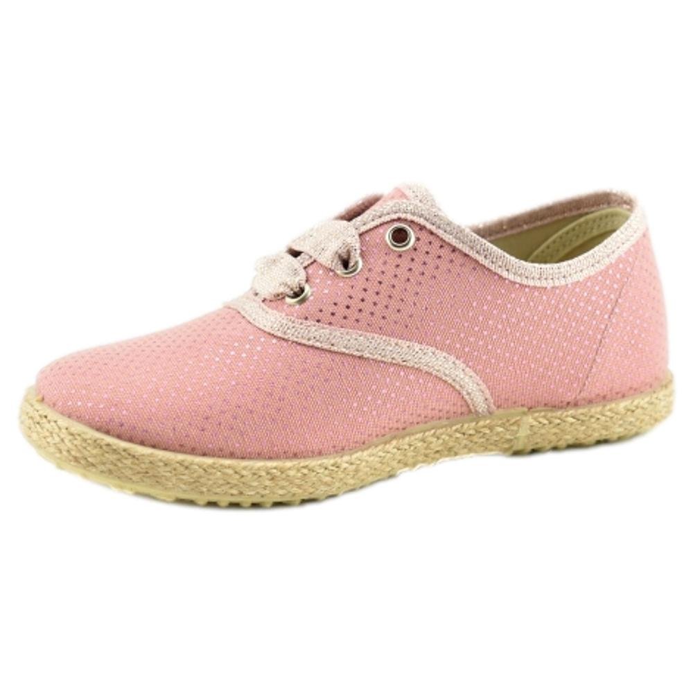 FABRICADO EN ESPAÑA. Inglés de lona metalizada con cordón de raso. Piso flexible.