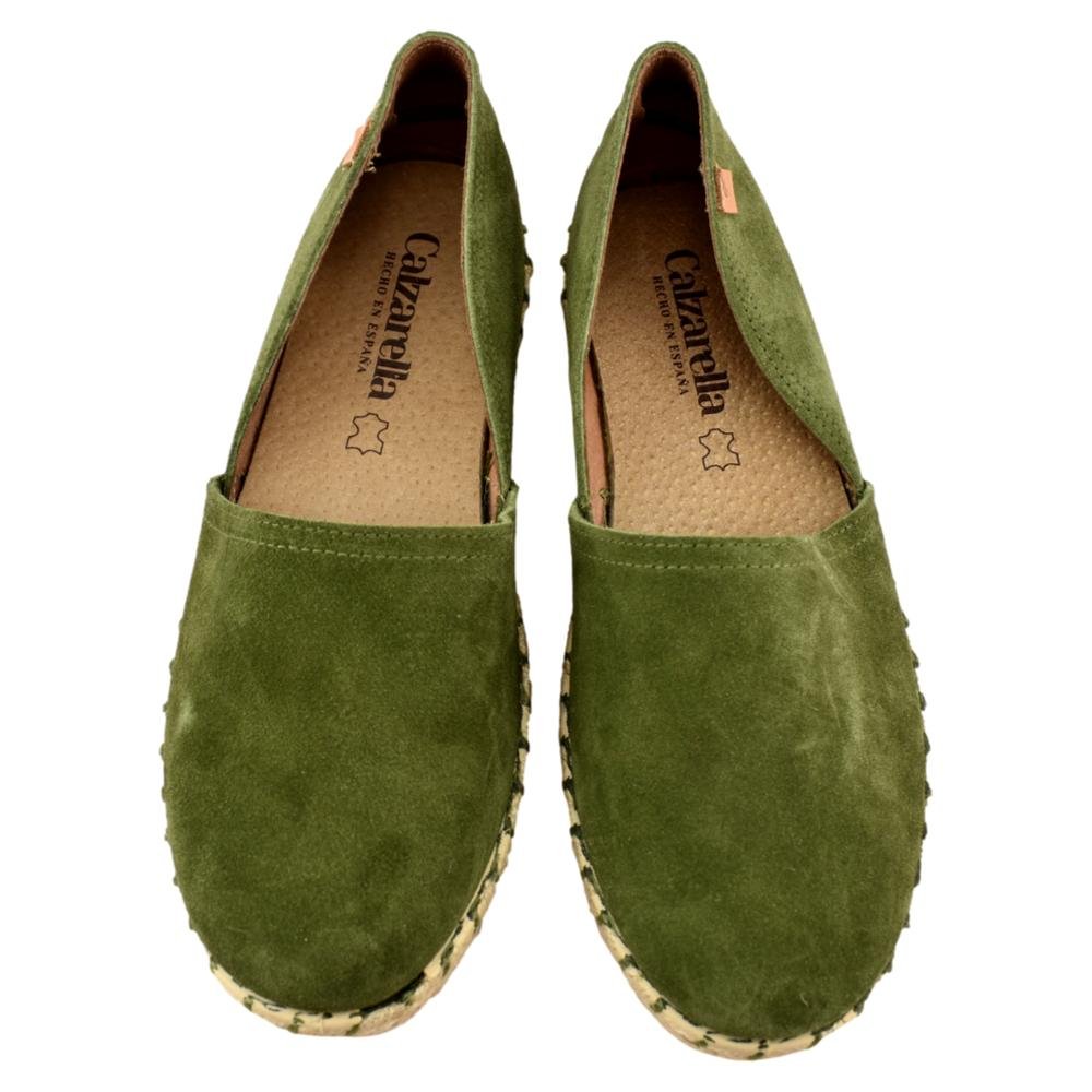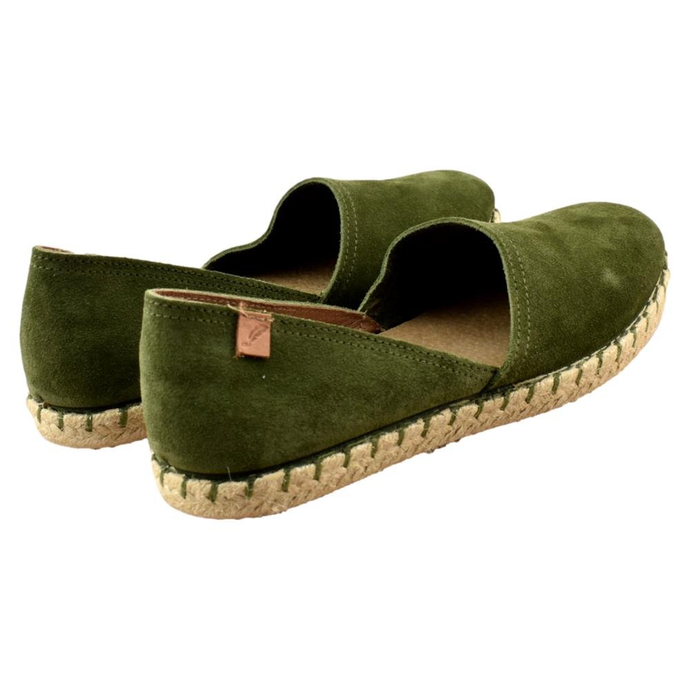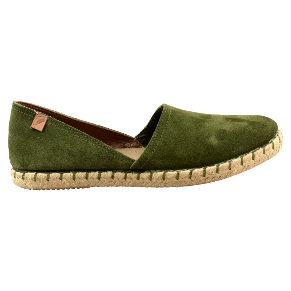 Zapato plano fabricado en piel de serraje color kaki. Puntera cerrada y talonera con elástico interior para asegurar una sujeción perfecta. Piso de goma flexible que aporta comodidad en cada pisada.